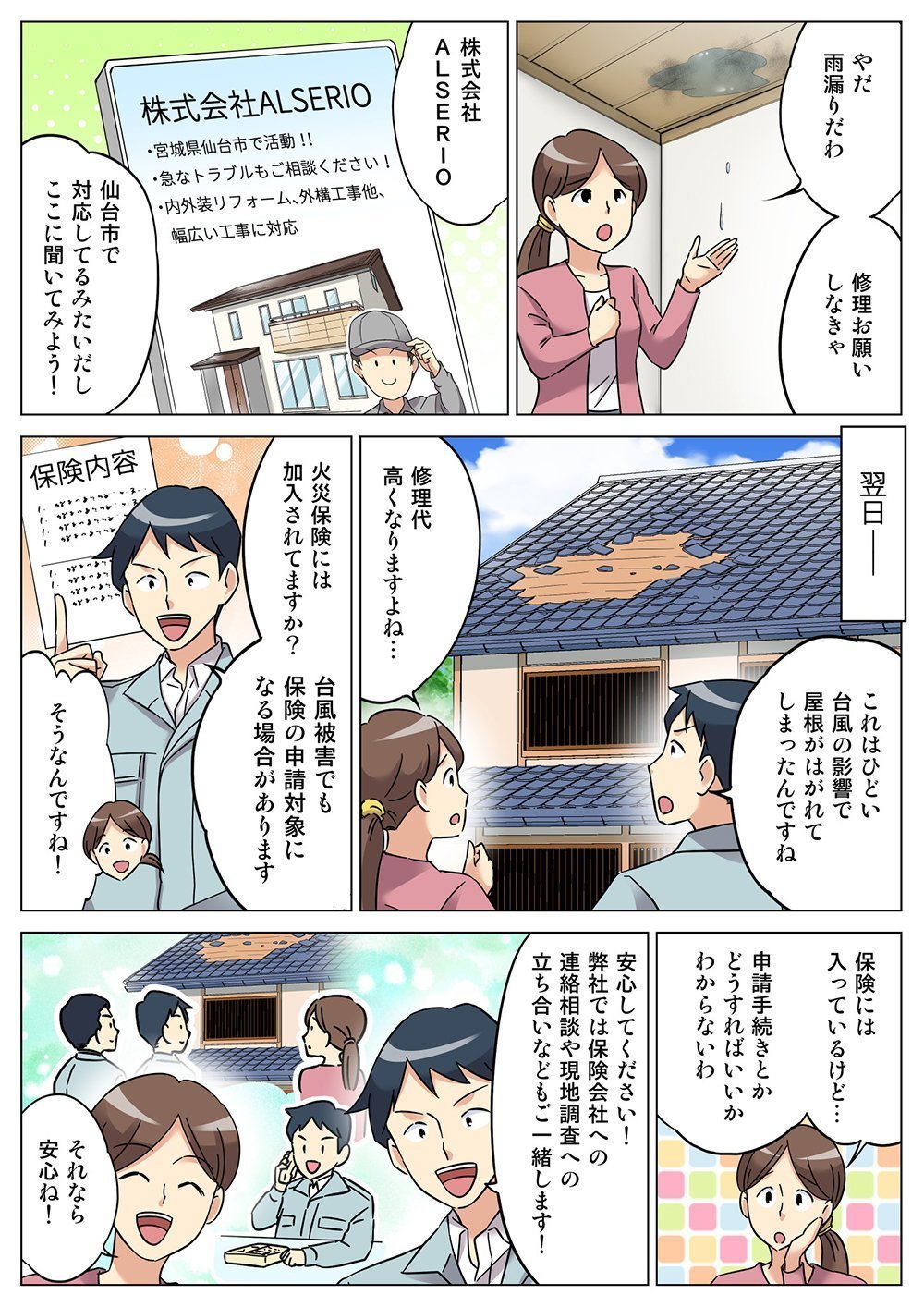 雨漏りなどの急なトラブルにも迅速に対応いたします。